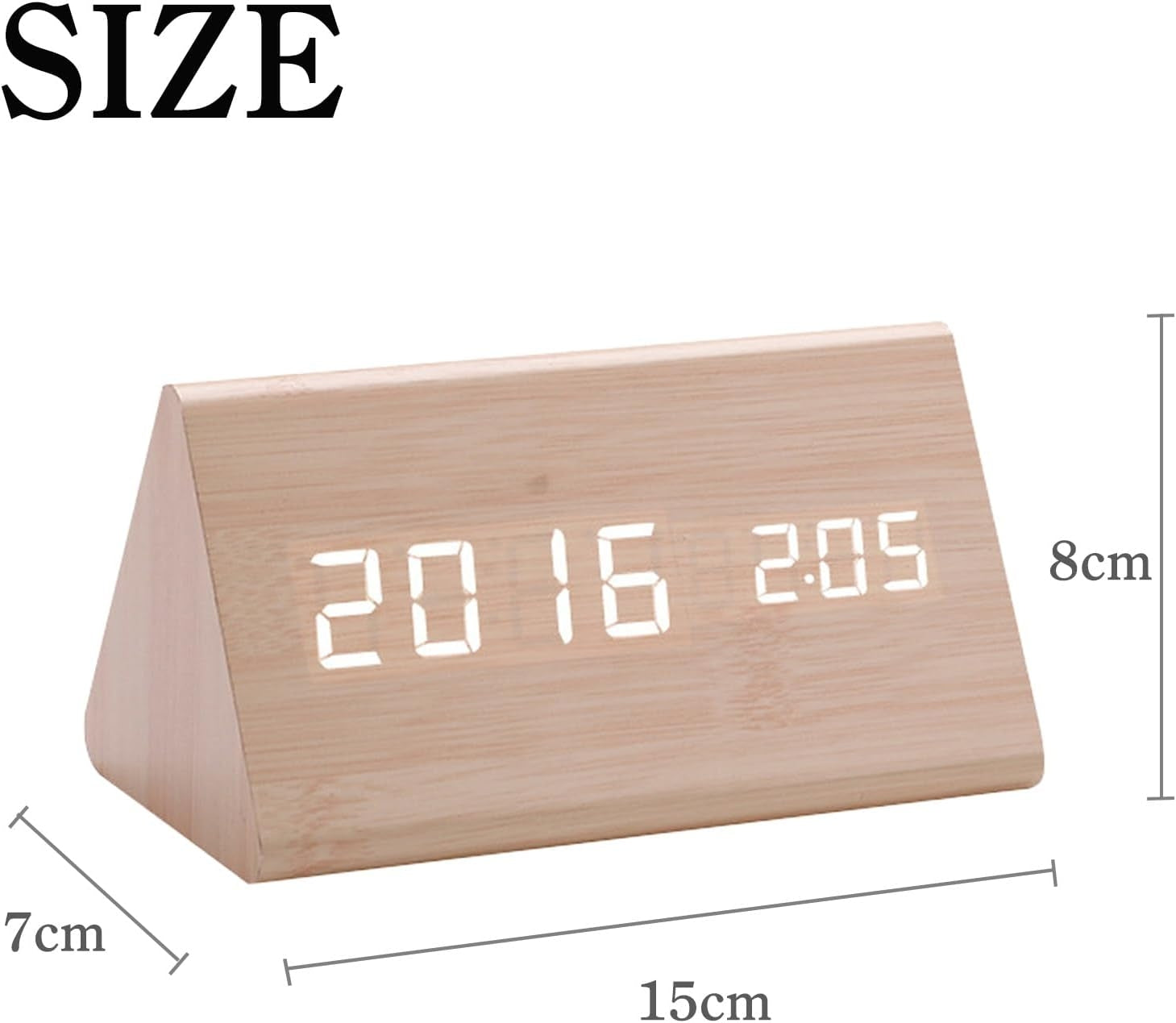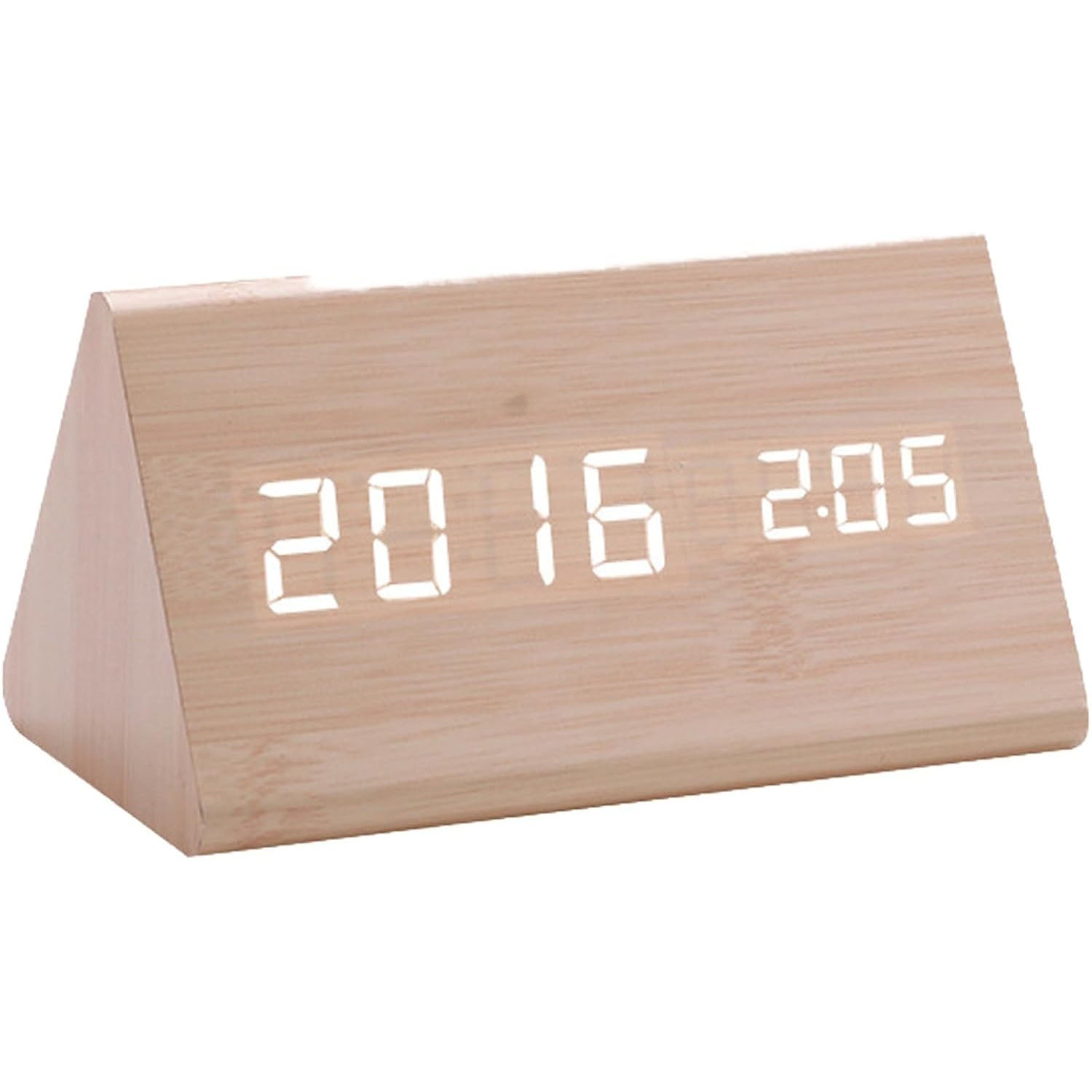 北欧風室内デジタル時計木目調、置き時計、目覚まし時計 LEDディスプレイスイッチ