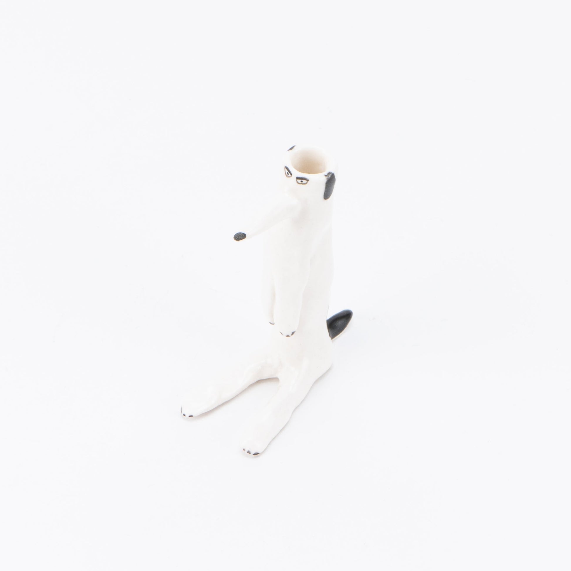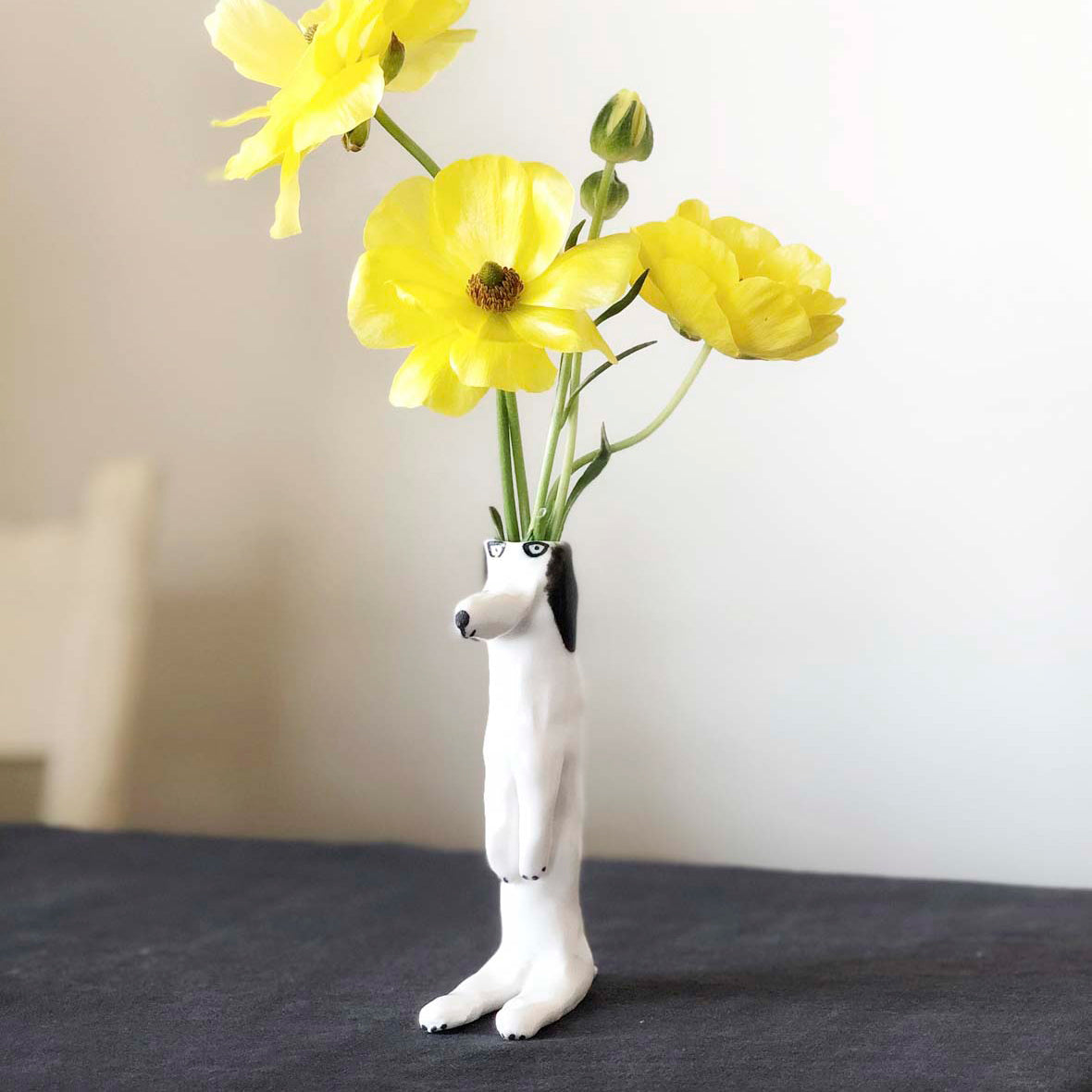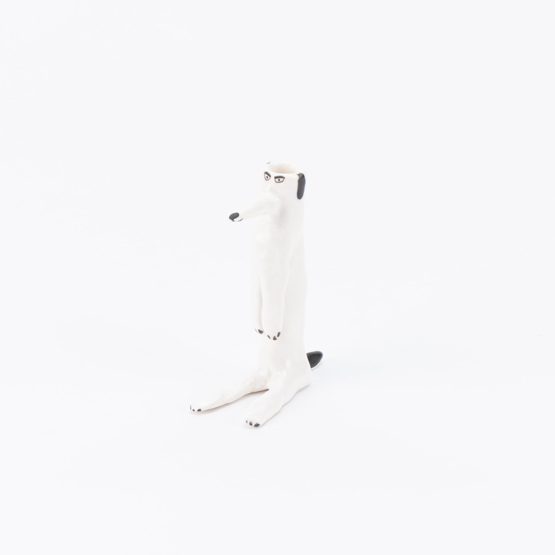エレオノール?ボストロム自身の手で成形されている犬の花瓶。彼女の定番人気アイテムで、こちらは耳が黒い犬のシリーズです。花瓶なので頭の部分に花を挿すのはもちろん、お気に入りの文房具なども大切に保管してくれますよ。