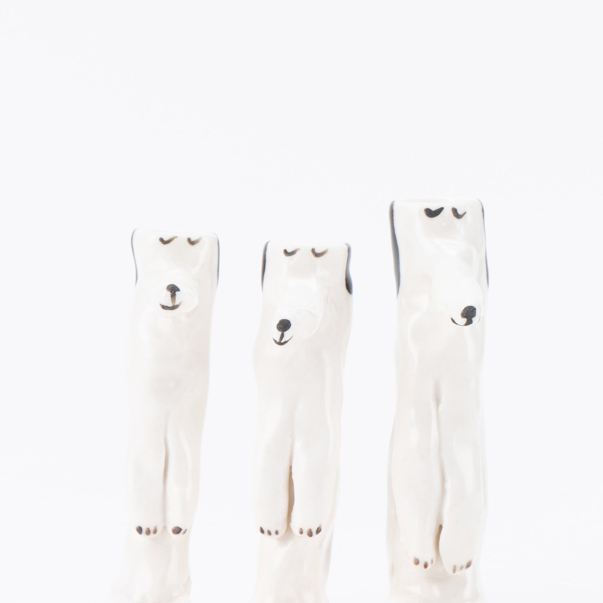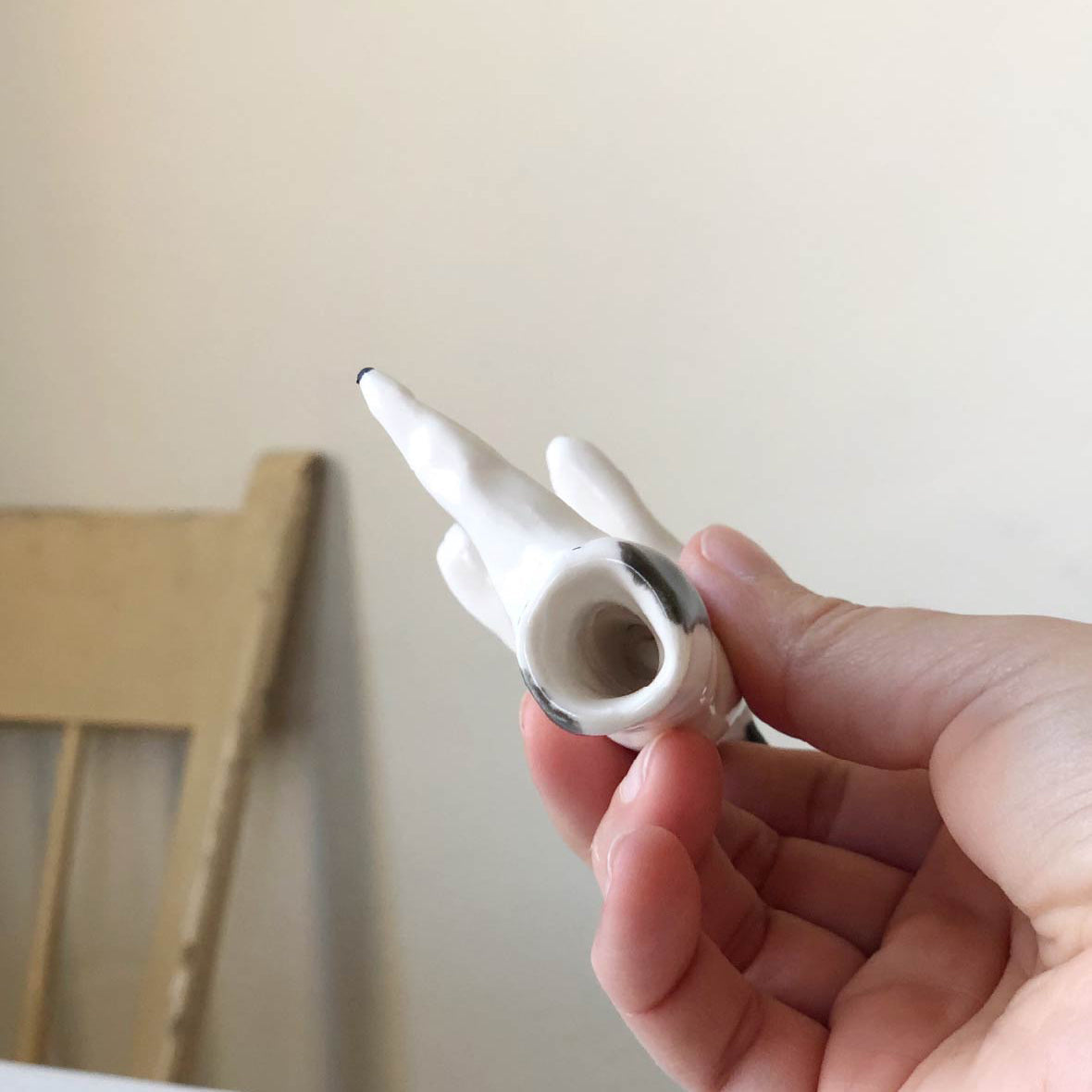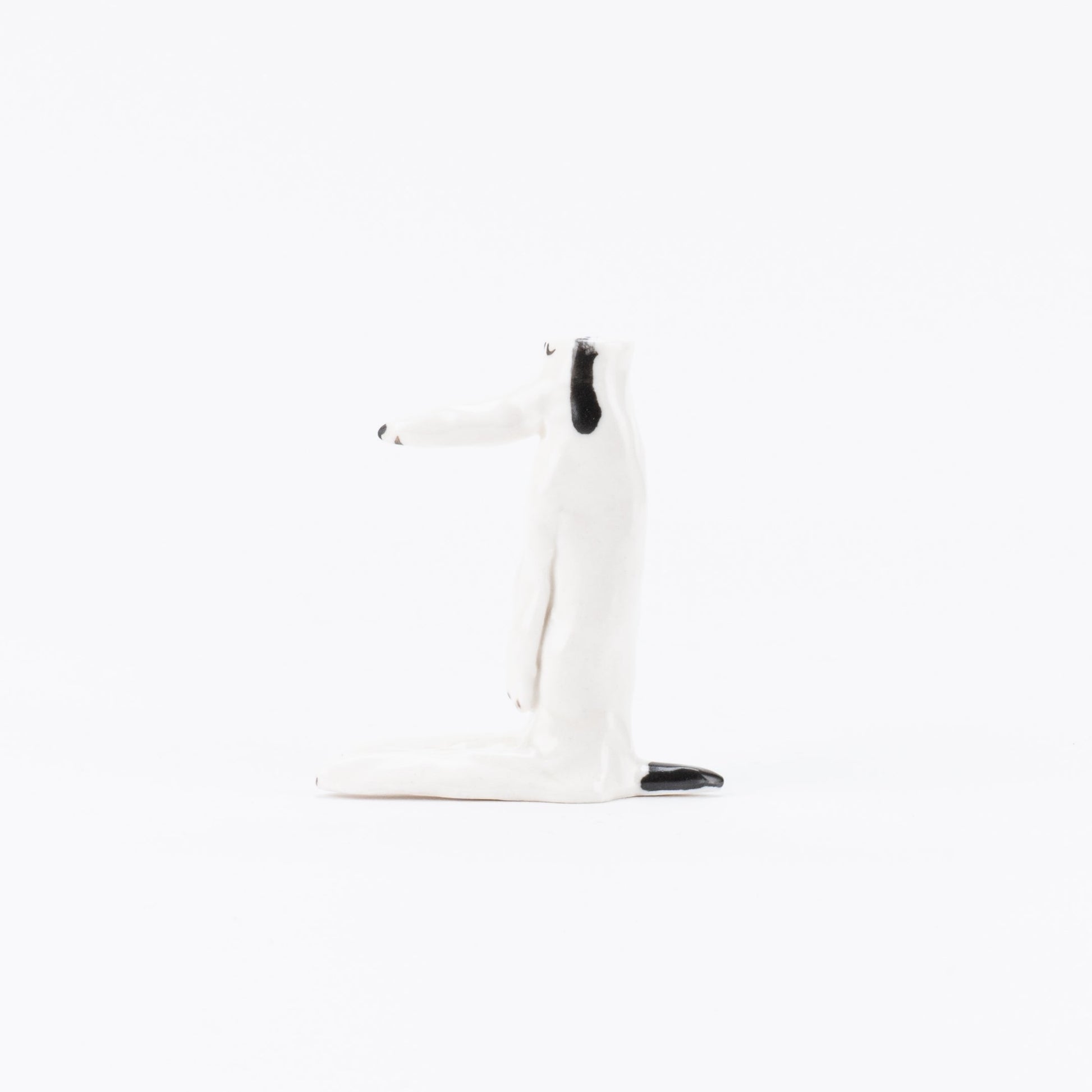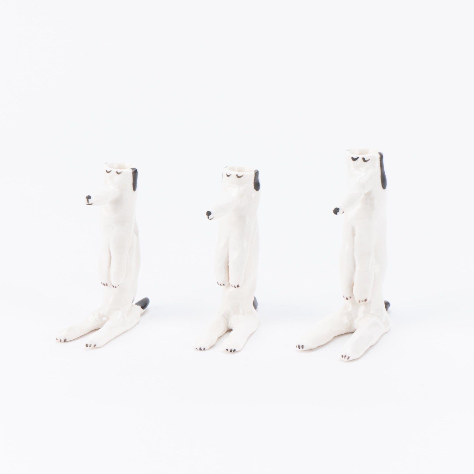 エレオノール?ボストロム自身の手で成形されている犬の花瓶。彼女の定番人気アイテムで、こちらは耳が黒い犬のシリーズです。花瓶なので頭の部分に花を挿すのはもちろん、お気に入りの文房具なども大切に保管してくれますよ。